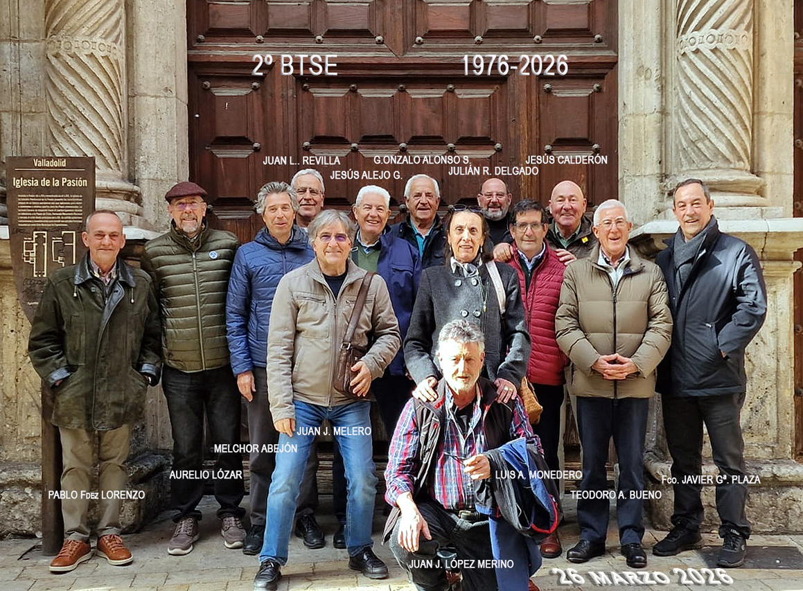 El pasado 28 de marzo nos reunimos en Valladolid parte de los últimos veinticinco alumnos que, en junio de 1976, finalizaron el segundo curso, cerrando definitivamente aquel Plan de Estudios en el que, una vez acabada la formación de Oficialía Industrial, se podía optar por el denominado Bachillerato Técnico Superior, modalidad Industrial-Minera, especialidad Electrónica, o BTSE, como se le denominaba coloquialmente y que constaba de un curso llamado de “Transformación” y dos cursos del citado BTSE.